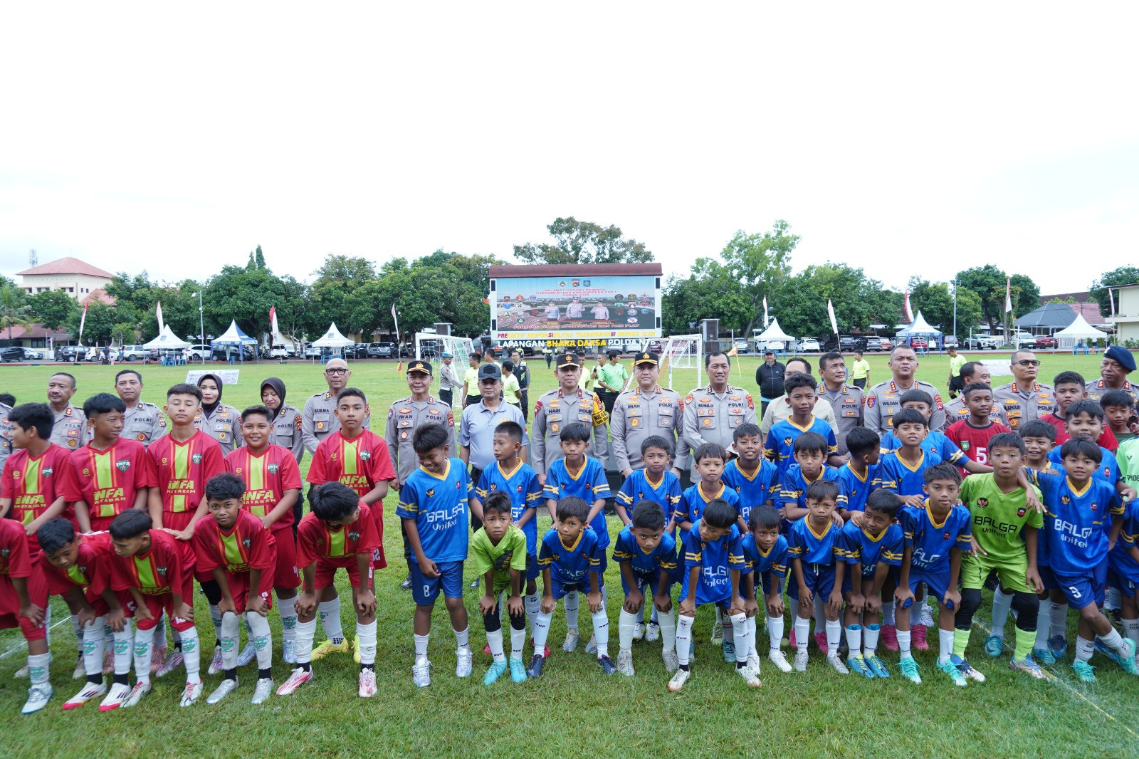 Di balik podium utama, Wakapolda NTB Brigjen Pol. Hari Nugroho, S.I.K. membacakan sambutan Kapolda NTB, menegaskan jika turnamen tersebut bukan sekadar soal bola yang ditendang ke gawang. Tapi soal karakter yang dipupuk sejak dini.
