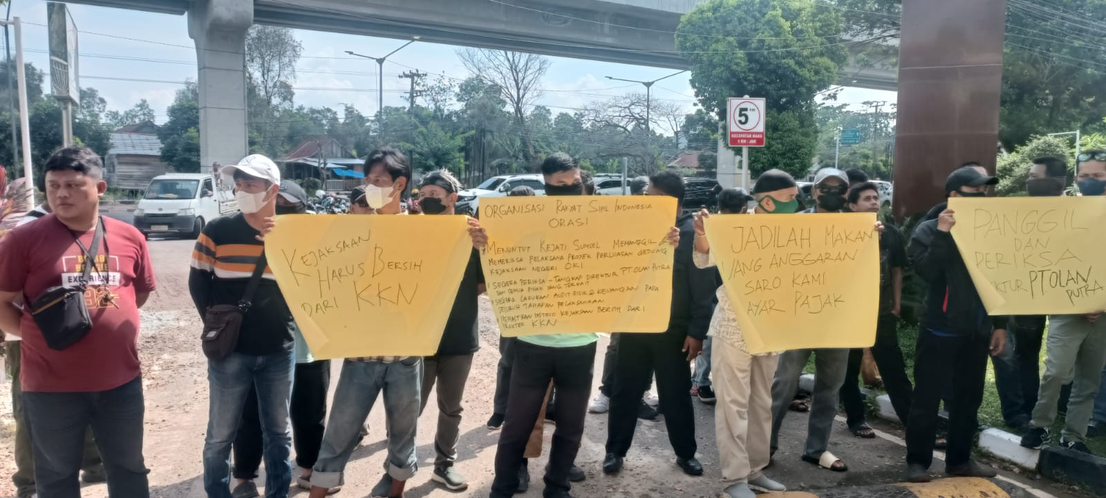 Puluhan Massa DPP LSM ORASI Geruduk Kantor Kajati Sumsel Melaporkan Dugaan KKN pada Proyek Perluasan Gedung Kantor Kajari OKI Sebesar 14.9 Milyard