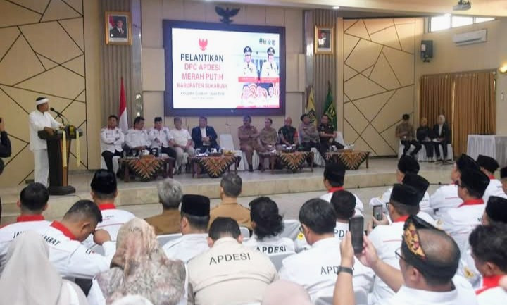 Pemerintahan    Senin 01 Desember 2025    22:14:03 WIBSUKABUMI,-Pengurus DPC Asosiasi Pemerintahan Desa Seluruh Indonesia (Apdesi) Merah Putih Kabupaten Sukabumi periode 2025–2030 resmi dilantik di Aula Sekretariat Daerah Kabupaten Sukabumi, Senin (1/12/2025). Pelantikan ini turut dihadiri Gubernur Jawa Barat H Dedi Mulyadi, Bupati Sukabumi H Asep Japar, Sekda H Ade Suryaman, unsur Forkopimda, anggota Komisi I DPRD Provinsi Jawa Barat, serta DPD Apdesi Merah Putih Jawa Barat.