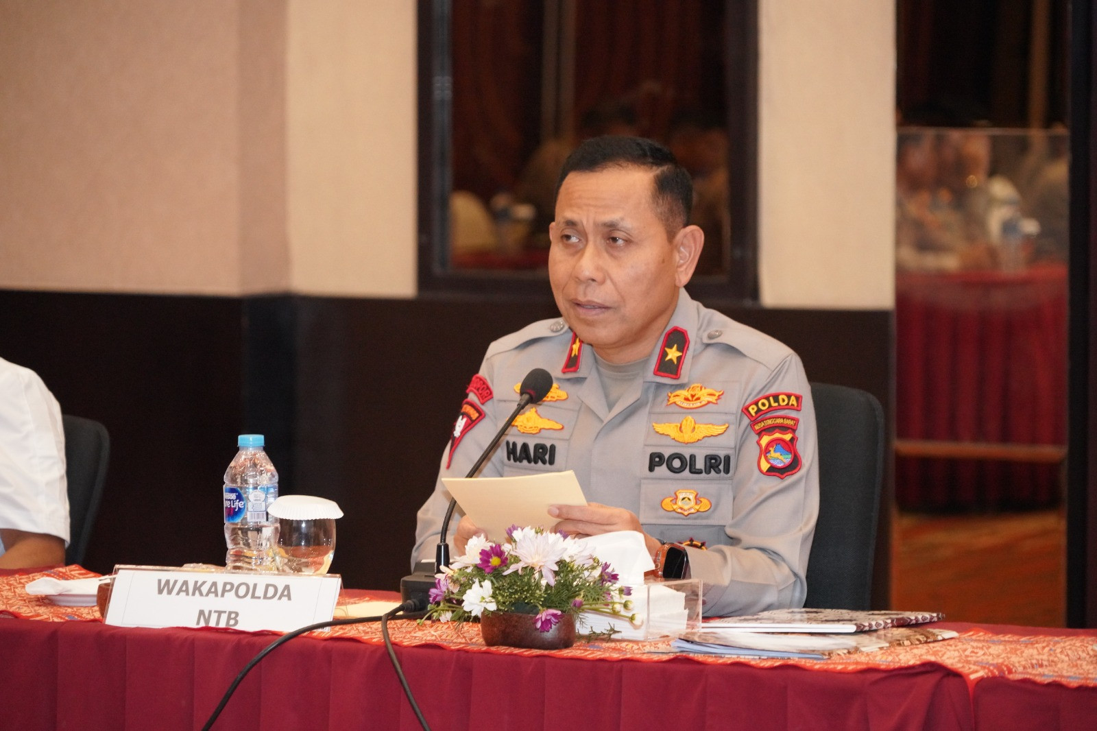 Wakapolda NTB Brigjen Pol. Hari Nugroho, S.I.K. yang memimpin apel menyampaikan arahan Kapolda kepada para pejabat utama Polda NTB, serta seluruh Kapolres dan Kapolresta jajaran.