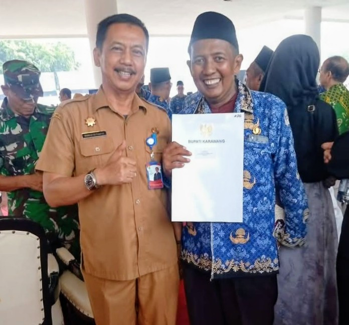 Pendidikan    Selasa 23 Desember 2025    13:42:49 WIBKarawang,– Setelah menanti bertahun-tahun dalam pengabdian tanpa pamrih, tiga tenaga kependidikan (Tendik) asal SMP Negeri 1 Rengasdengklok akhirnya resmi dilantik sebagai Pegawai Pemerintah dengan Perjanjian Kerja (PPPK) Paruh Waktu. Pelantikan tersebut digelar secara khidmat di Lapangan Karangpawitan, Kabupaten Karawang, pada Selasa, 23 Desember 2025, bersama ribuan PPPK dari berbagai instansi se-Kabupaten Karawang.