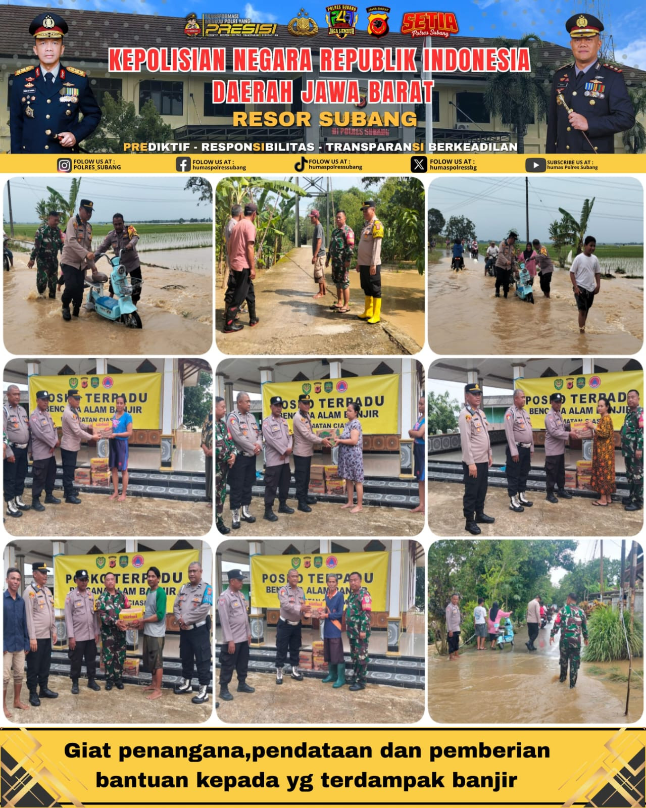 Polres Subang Salurkan Bantuan Logistik dan Lakukan Pendataan Dampak Banjir Sungai Ciasem